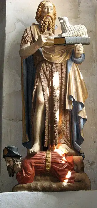 In de zuidoostelijke hoek van het koor staat op een stenen sokkel een houten beeld van Johannes de Doper van 2,75 meter hoog. Het 15e-eeuwse beeld werd bij een restauratie in 1980 volgens een ouder kleurschema beschilderd. Sint-Jan staat met een bijbel en een lam predikend op de rug van een kleine man, waarvan men aanneemt dat hij koning Herodes moet voorstellen, die volgens de Bijbel Johannes liet onthoofden. Het beeld bevindt zich niet meer in de oorspronkelijke staat; de Bijbel met daarop het beeld van het lam werden later toegevoegd, terwijl de kruisstaf ontbreekt.