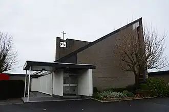 De kerk werd gebouwd in de stijl van het naoorlogs modernisme. Het is een bakstenen gebouw onder lessenaardak. De noordzijde heeft een hoog en smal glas-in-loodraam. De zuidzijde heeft een klokkenmuur, getooid met een kruis.