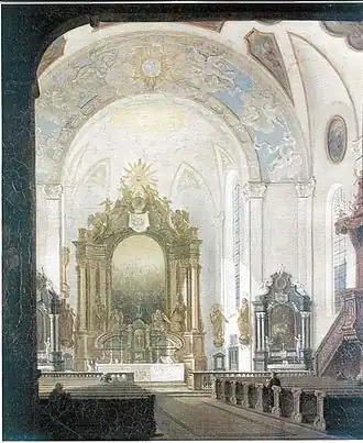 Tijdens herhaaldelijke bombardementen in 1944 op de stad werd de kerk vrijwel geheel vernietigd. Het interieur brandde uit en het dak stortte in; slechts de gevel bleef zwaar beschadigd staan. De wederopbouw volgde van 1953 tot 1955 onder leiding van Georg Wellhausen. Alleen de siergevel van de kerk werd gerestaureerd, de rest werd geheel nieuw opgebouwd. De kerk kreeg vooralsnog een moderne inrichting, maar in de jaren 1977-1978 werd het kerkgebouw opnieuw van een barokke inrichting voorzien om weer iets van het oorspronkelijk uitbundige karakter van de ruimte terug te geven. Tegenwoordig domineert het grote hoofdaltaar de kerkruimte, dat met de beide zijaltaren en de zachte kleuren van de muren de oude glorie van de kerk probeert te herstellen.