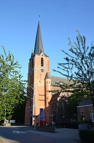 Het betreft een naar het zuiden georiƫnteerde bakstenen kruisbasiliek in neogotische stijl. De kerk heeft een driezijdig gesloten koor en een voorgebouwde toren. Deze heeft vier geledingen en wordt geflankeerd door een achthoekige traptoren.