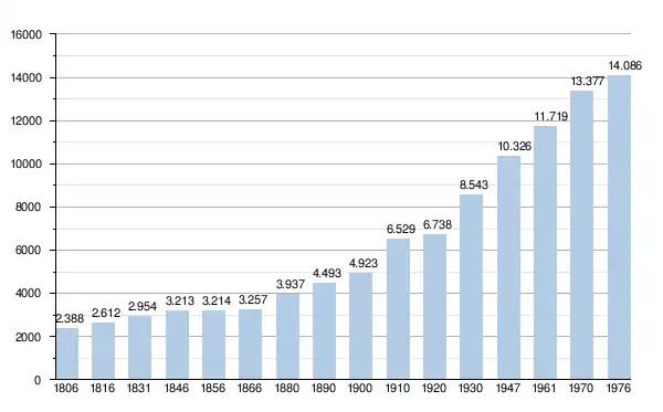 In 1570 telde de gemeente 400 inwoners. In 1686 waren er in het dorp drie brouwerijen, 26 herbergen en zes winkels.[2] Tussen 1762 en 1769 waren er ongeveer 1430 inwoners. In 1786 steeg het aantal verder tot 1532 mensen en in 1831, geen 50 jaar later, was het aantal mensen bijna verdubbeld tot 2954. Nog zo'n 15 jaar later, in 1846, waren er 3213 inwoners, weer een sterke stijging.[2]