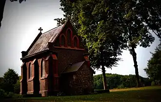 De absis van de kapel is opgetrokken in Kunrader kalksteen.