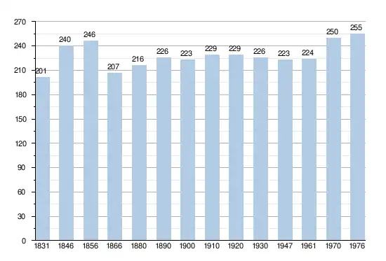 - Bronnen:NIS, Opm:1831 tot en met 1970=volkstellingen; 1976 = inwoneraantal op 31 december