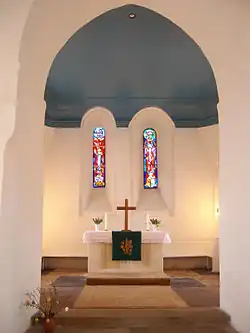 De kastbanken stammen uit de 19e eeuw. De glas-in-loodramen in het koor werden in 1929 ingebouwd.