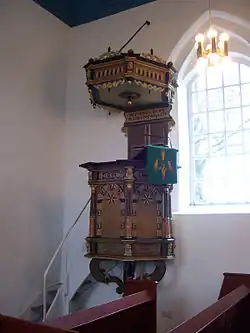 Onder het kerkmeubilair bevindt zich een preekstoel uit het jaar 1644, die door de meester Tönnies Mahler werd ingebouwd. De kansel is versierd met inlegwerk en houtsnijkunst. Van Tönnies Mahler stamt vermoedelijk ook de houten opzet van het doopvont, dat oorspronkelijk een gotisch wijwaterbekken was. De resten van een houtgesneden altaar, dat in 1520 werd gebouwd en zich aan Albrecht Dürer oriënteerde, zijn tegenwoordig in het streekmuseum van Weener te bezichtigen.