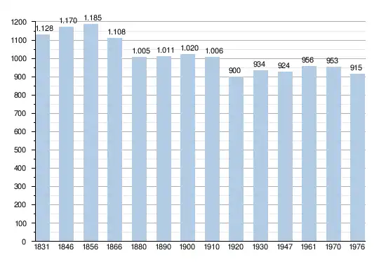 - Bronnen:NIS, Opm:1831 tot en met 1970=volkstellingen; 1976 = inwoneraantal op 31 december