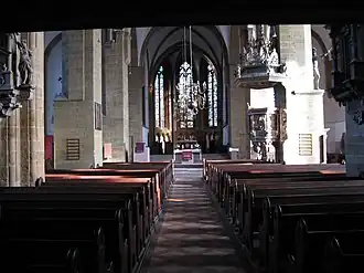 - In de kerk bevindt zich een renaissance kansel uit 1608. De kansel werd van lindenhout gemaakt; de decoraties van de kansel getuigen van de reformatorische theologie.