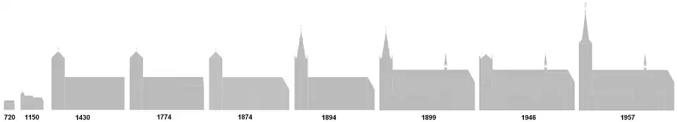 | Gebouwd in | Eerste kerk ± 720 Tweede kerk 1150 Derde kerk 1430 Huidige in 1899 | |||