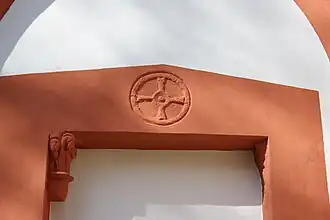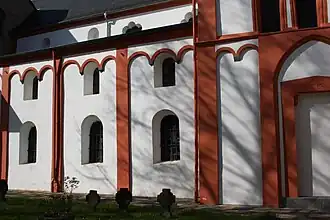 Lisenen en rondboogfriezen bepalen het aanzien van de buitenkant van de kerk. Boven de viering verheft zich een achthoekige toren, die eindigt in een krans van acht puntgevels en wordt bekroond door een achtzijdige spits. Aan de zuidzijde bevindt zich een dichtgemetseld portaal met een spitsboog. Boven de latei werd een cirkel met daarbinnen een Grieks kruis gekerfd. Onder de latei bevindt zich in de linkerhoek een kapiteel met een dier. Vermoedelijk zijn deze delen afkomstig uit een oudere bouw. De kerk is geschilderd in de oorspronkelijke kleurstelling.
