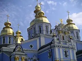 De oudste kloostergebouwen dateerden van de 11e-12e eeuw, na de stichting door de Oekraïense vorst Svjatopolk II. Deze vorst had als doopnaam Michael, vandaar de naam voor het Sint-Michielsklooster, bijgenaamd met de Gouden Koepel. De Mongolen verwoestten het klooster in 1240. In de 16e eeuw werd het klooster grondig heropgebouwd. Het werd een bedevaartsoord. De verbouwingen in Oekraïense barok dateren van twee eeuwen later.