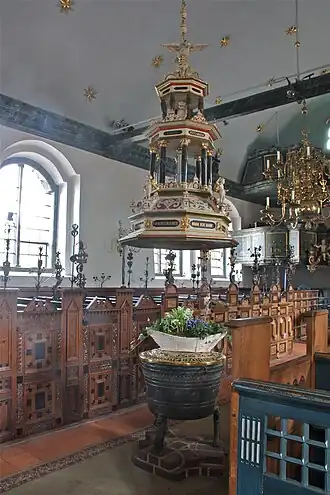 Naast het altaar bevindt zich een goed bewaarde biechtstoel uit het jaar 1784, een bewijs dat het sacrament van de biecht nog lang tot de lutherse traditie werd gerekend. Tegenwoordig is de biechtstoel in gebruik als sacristie.