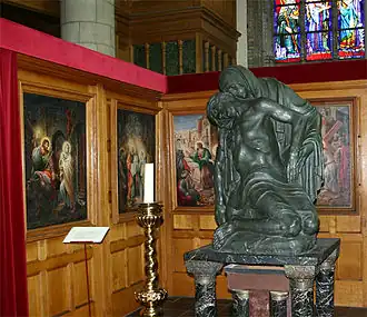 - Bronzen kruisweg van veertien staties (ca. 1931-1933) en bronzen Piëta (Nood-Gods) (1932) naar ontwerp van Oscar Sinia en gegoten door de gebroeders Minne uit Gent