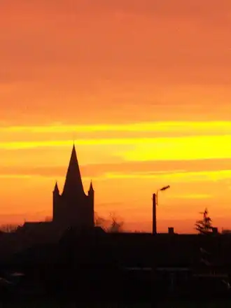 - voorstaande westtoren met flankerende torentjes