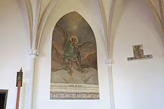 In de doopkapel ziet men een oud fresco dat de aartsengel Michaël voorstelt.