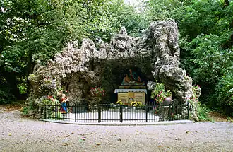 In de tuin van de kerk zijn twee grotten uit 1912: een Jozefgrot met een beeld van Jozef en een Lourdesgrot. In de Lourdesgrot bevindt zich eveneens een monument voor de gevallenen uit 1921 in de vorm van een altaar.