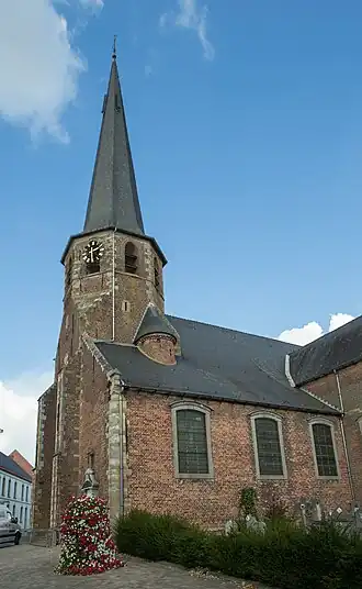 Op deze plaats stond een 15e-eeuwse gotische kerk waarvan de noordelijke transeptarm en de toren behouden zijn gebleven. Omstreeks 1780 werd de kerk in classicistische stijl herbouwd.