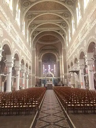 De kerk werd vernietigd tijdens de Eerste Wereldoorlog en daarna herbouwd in neo-byzantijnse stijl naar ontwerp van Louis Marie Cordonnier. De voorgevel wordt geflankeerd door twee torens.