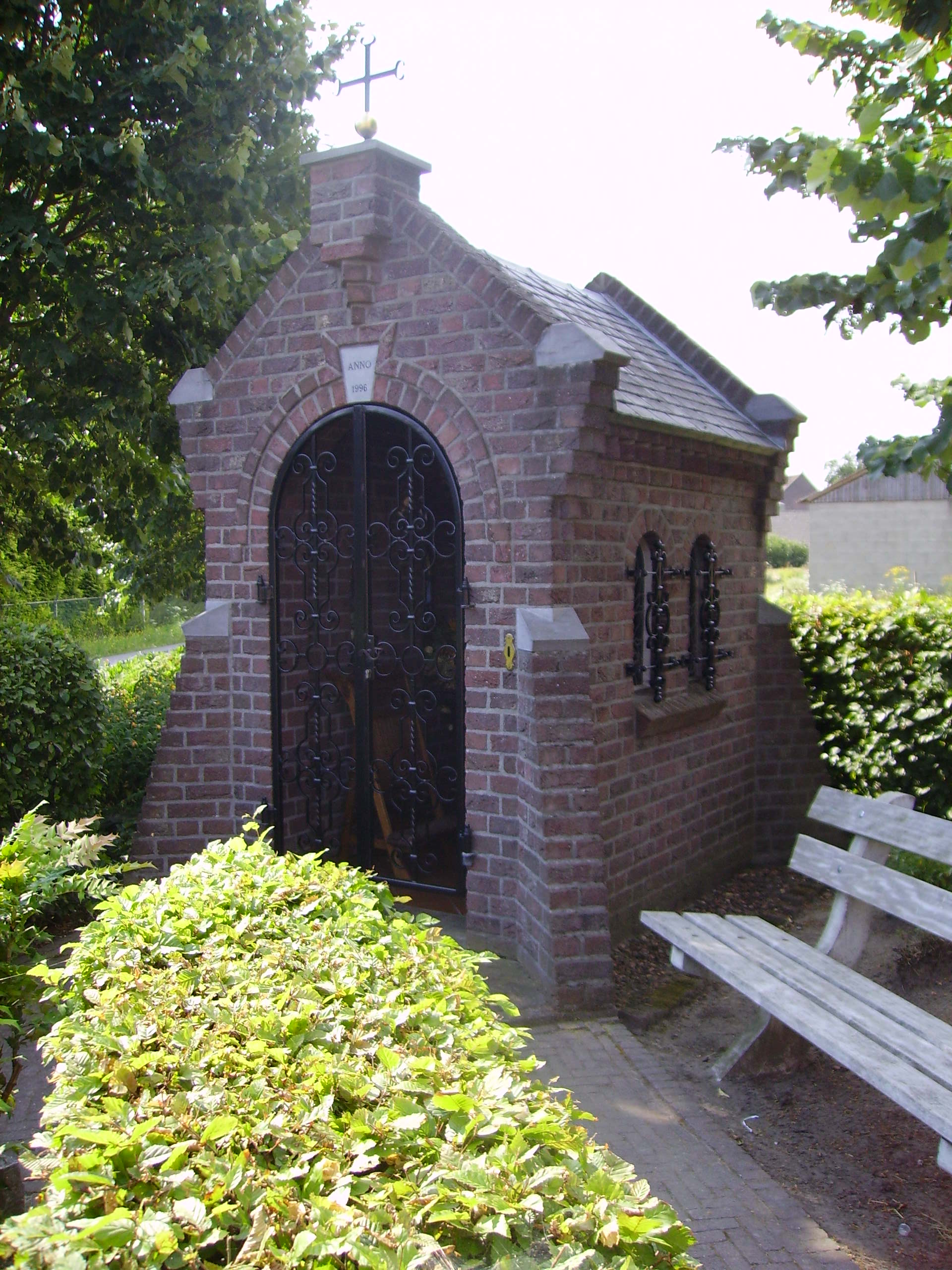 De bakstenen kapel is opgetrokken op een rechthoekig grondplan en wordt gedekt door een verzonken zadeldak met leien. In de beide zijgevels zijn elk twee rondboogvensters aangebracht en onder de daklijst een muizentand. Op de hoeken van de kapel bevinden zich halfhoge overhoekse steunberen. De frontgevel en achtergevel zijn een topgevel met verbrede aanzet met op de uiteindes natuurstenen. De top van de frontgevel wordt bekroond met een toppilaster met daarop een smeedijzeren kruis op een gouden bol. In de frontgevel bevindt zich de rondboogvormige toegang van de kapel die wordt afgesloten met een sierhek. De sluitsteen van de rondboog bevat de tekst Anno 1996.[1][2]