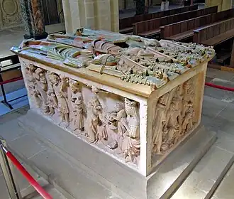 De sarcofaag telt tot de belangrijkste kunstwerken van de Severuskerk. De vier reliëfplaten van de muren ontstonden tussen 1360 en 1370. De hoogreliëfs beelden scènes uit het leven en de werken van de heilige Severus en de Aanbidding van de heilige Driekoningen uit, naar een voorbeeld in de Neurenbergse Sint-Laurentiuskerk