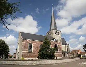 Zo ontstond een georiƫnteerd driebeukig kerkgebouw. De oudste gedeelten van het gebouw zijn in zandsteen (Brusseliaan) en de 18e-eeuwse delen zijn in baksteenn met gebruik van zandsteen uitgevoerd.