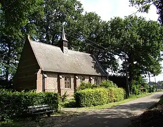 Het betreft een kapel op rechthoekige plattegrond onder zadeldak. Op het dak bevindt zich een dakruiter. De voorgevel toont vlechtingen en speklagen.