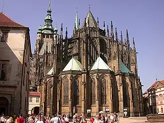 De Sint-Vituskathedraal heeft drie torens. De twee westelijke torens worden met hun 88 meter nog met 11 meter overtroffen door de hoofdtoren aan de zuidzijde (niet toegankelijk). Vanaf de hoofdtoren luidt bij bijzondere gelegenheden de grootste klok van Bohemen: 17 ton zwaar, 2 meter hoog, doorsnede 2,5 meter. De Sint-Vituskathedraal is het belangrijkste sacrale bouwwerk van de stad, ook vroeger, toen de Boheemse koningen in de 124 meter lange en 34 meter hoge domkerk gekroond werden. Hier bevinden zich ook de koningsgraven. Onder anderen liggen hier dochters van keizerin Maria Theresia.