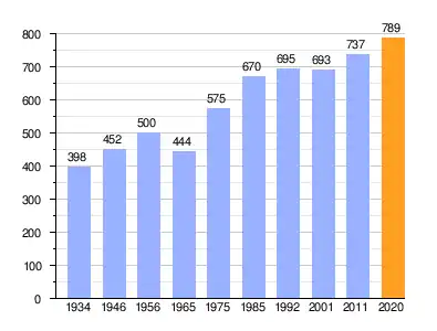 | Bevolkingsontwikkeling van Sjkorpilovtsi tussen 1934 en 2020 |