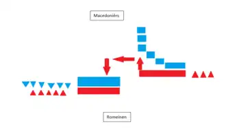 2 legioenen: 8400 man, 2 legioenen van de bondgenoten: 10.000 man. 4.000 soldaten in de falanx en 4.000 peltasten van de Aetolische Bond, 3600 cavalerie en 20 olifanten.