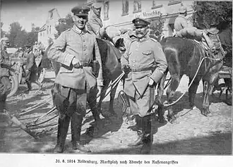 De Duitsers concentreerden zich in het eerste deel van de oorlog vooral, volgens het Schlieffenplan, op de inval van Frankrijk. Pas later verdedigden ze zich tegen de Russische aanvallen op Oost-Pruisen. Toch werden er enkele forten langs de Weichsel gebouwd. De verdediging lag in handen van generaal Maximilian von Prittwitz en het Duitse 8e Leger. Dit bestond uit het 10e Legerkorps van generaal Hermann von François, het 17e Legerkorps onder generaal August von Mackensen, het 20e Legerkorps onder generaal Friedrich von Scholtz, het 1e Reservekorps onder luitenant-generaal Otto von Below en een aantal landweerbrigades en vestingtroepen. In totaal zestien divisies, waarvan zes infanteriedivisies, drie reservedivisies, drie landweerdivisies, één cavaleriedivisie en twee divisies vestingstroepen. In totaal beschikten ze over 846 stukken geschut.