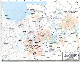 Samsonovs laatste hoop was zich een uitweg te vechten. Intussen nam Rennenkampf volgens een onderschept radiobericht van 29 augustus nog steeds aan dat de Duitse hoofdmacht bij Koningsbergen was geconcentreerd. Eens te meer wisten de Duitsers dat van die kant geen gevaar dreigde. Er arriveerden nog wel Russische versterkingen in de Duitse achterhoede, maar die waren te zwak om de omsingeling te doorbreken. Samsonov zag in dat zijn situatie hopeloos was. Op 30 augustus nam hij afscheid van zijn staf, waarna hij zelfmoord pleegde in de bossen ten zuidwesten van Willenberg. Later in het jaar zouden opnieuw Russische legers Oost-Pruisen binnentrekken, maar deze invasie liep al snel vast en had geen effect meer.