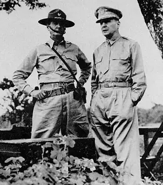 Het garnizoen van de VS, dat bestond uit 22.532 manschappen, ook bekend als de Filipijnse Afdeling, stond onder bevel van generaal-majoor George Grunert. Het bestond voornamelijk uit de Filipijnse divisie van de VS, dat gedeeltelijk bestond uit een vrij groot aantal Filipijnen, dat diende als verkenners. Het garnizoen werd versterkt door 8500 manschappen van de Nationale Reserve van het vasteland van de Verenigde Staten, dat gedeeltelijk bestond uit de enige gepantserde eenheden, twee tankbataljons.