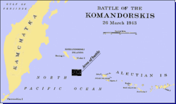 - Dit artikel of een eerdere versie ervan is een (gedeeltelijke) vertaling van het artikel Battle of the Komandorski Islands op de Engelstalige Wikipedia, dat onder de licentie Creative Commons Naamsvermelding/Gelijk delen valt. Zie de bewerkingsgeschiedenis aldaar.
