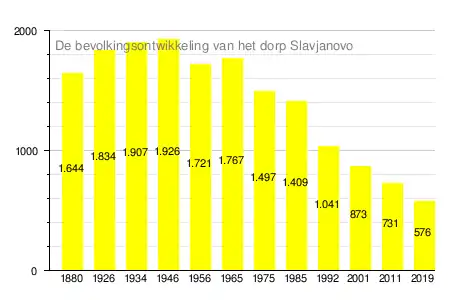 De etnische Bulgaren vormden de grootste bevolkingsgroep in het dorp Slavjanovo. In februari 2011 identificeerden 513 personen zichzelf als etnische Bulgaren, oftewel 83,7% van alle definieerbare respondenten.[1][2] De grootste minderheid vormden de Bulgaarse Turken (70 personen; 11,4%) en de Roma (23 personen; 3,8%).