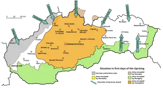 Het doel van de Slowaakse opstand was het vrijmaken van de opmarsroute van het Rode Leger via Slowakije naar Wenen. Bij het begin van de opstand was Slowakije als bondgenoot van Duitsland nog niet bezet. De Slowaakse opstand kwam voortijdig op gang omdat de Duitse militaire attaché die uit Roemenië was uitgewezen op 27 augustus in Slowakije gedwongen was om uit de trein te stappen en de volgende ochtend in Turčiansky Svätý Martin was doodgeschoten. Dit incident werd snel bekend en leidde tot een onmiddellijke Duitse reactie, waarbij vanuit het noorden eenheden van de Wehrmacht en vanuit het noordwesten eenheden van de Waffen-SS het land binnentrokken. De Slowaken besloten onmiddellijk in opstand te komen om te voorkomen dat het land in zijn geheel bezet zou worden.