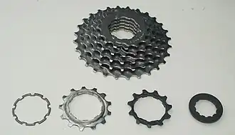 Een sluitring is een fietsonderdeel waarmee de cassette of het kettingwiel is gemonteerd aan de naaf.