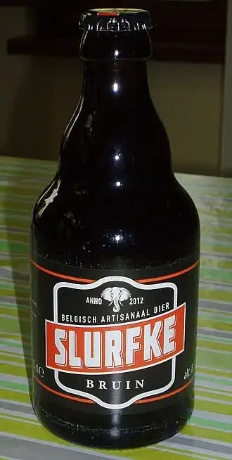 - ↑ a b De Greef, Jos, "Thuis-bier" Slurfke komt op de markt. vrtnws.be (28 augustus 2015). Geraadpleegd op 16 oktober 2024.