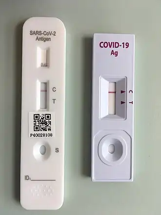 Snelle antigeentests worden ingezet voor het snel signaleren van infectie met COVID-19. Deze testen worden ook laterale flow-tests genoemd. De test geeft de gebruikers binnen 5-30 minuten een uitslag. Snelle antigeentests identificeren hoogpositieve individuen die op dat moment van de infectie het meest besmettelijk zijn en het virus potentieel onder een groot aantal andere mensen kunnen verspreiden. De snelle antigeentest detecteert ongeveer 60-70% van de besmette personen.[2] Snelle antigeentests worden het best gebruikt als onderdeel van massale tests of screening op bevolkingsniveau.[3]