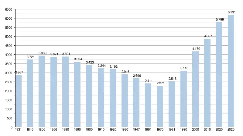 Alle historische gegevens hebben betrekking op de huidige gemeente, inclusief deelgemeenten, zoals ontstaan na de fusie van 1 januari 1977.
