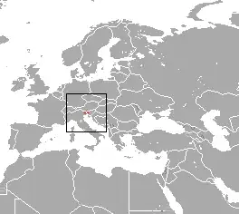 Verspreidingsgebied van de Udinese bosspitsmuis.