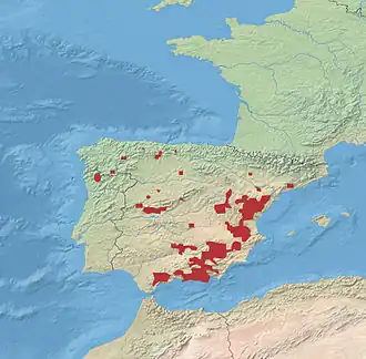 | Verspreidingsgebied van de Spaanse steenbok. | |||||||||||||||