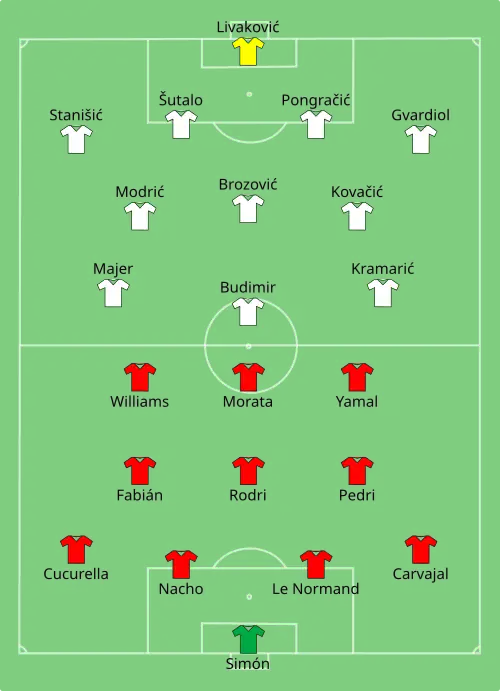 - ↑ Spanje heeft in eerste EK-kraker Kroaten al bij rust op de knieën NOS, 15 juni 2024