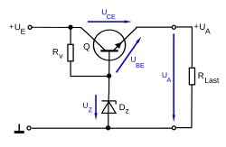 De eenvoudigste spanningsregelaars bevatten een zenerdiode (voor de referentiespanning), een weerstand en een transistor in een gemeenschappelijke-collectorversterker configuratie, soms ondergebracht in één behuizing.
