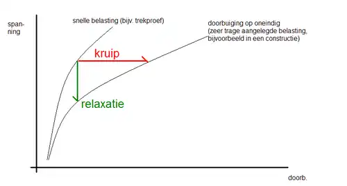 Het verschijnsel wordt vaak verward met kruip, hetgeen een ander fenomeen is: wanneer er kruip optreedt bij een mechanische belasting, neemt het spanningsniveau niet af, maar de rek neemt wel toe. Een voorbeeld van kruip is een waslijn, die belast wordt (door het natte wasgoed) en die daardoor verlengt.