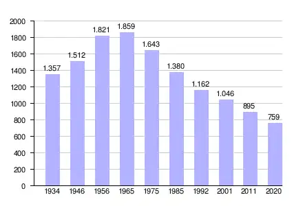 | Bevolkingsontwikkeling tussen 1934 en 2020 |