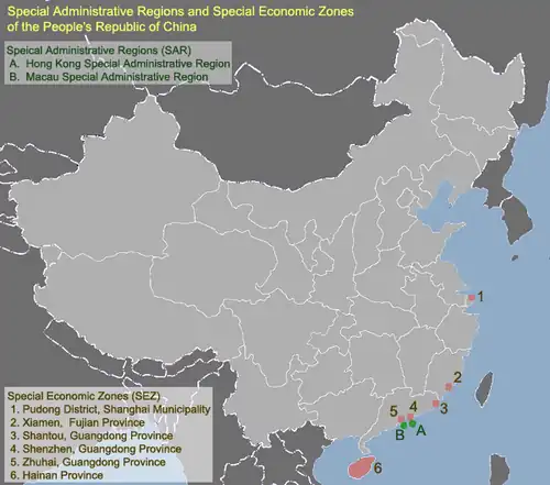 Hongkong en Macau zijn twee Speciale bestuurlijke regio's van de Volksrepubliek China. Dit houdt in dat beide gebieden hun eigen economisch systeem mogen behouden en politieke autonomie hebben, maar wel horen bij de Volksrepubliek China. In de praktijk komt het neer op een status aparte.[1][2]