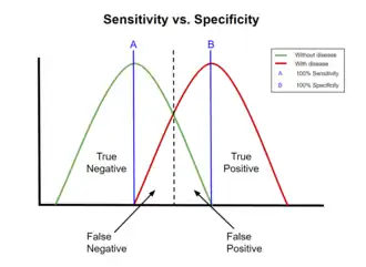 Bij medische tests is een hoge sensitiviteit en specificiteit vaak niet haalbaar. Als beide 90% bedragen, wordt dat in de geneeskunde meestal al als een heel goede test beschouwd. Een zwangerschapstest is een van de beste, met een sensitiviteit en een specificiteit van circa 99%. Bij de reumatest zijn beide ongeveer 80%. De in 2021 actuele SARS-COV-2-antigeensneltest heeft een sensitiviteit van 96,2% en een specificiteit van 99,2%[2]