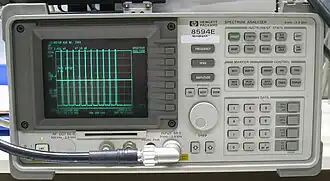 - Hoogfrequent, kwaliteitscontrole: De Europese Unie stelt bij het CE-keurmerk eisen aan apparaten met betrekking tot de ongewenste radiogolven die geproduceerd mogen worden. Door een antenne op een spectrumanalyzer aan te sluiten kunnen deze stoorsignalen gemeten worden.