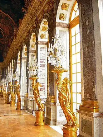 - De door zilversmid Claude Ballin gemaakte massief-zilveren tafels, stoelen, vazen, kandelaars en bloembakken met sinaasappelboompjes werden in 1689 omgesmolten om de oorlogsuitgaven te kunnen financieren. Ze werden vervangen door vergulde houten exemplaren die er vandaag de dag nog steeds staan.