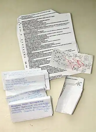 Men spreekt ook wel van een spiekbriefje als iemand bij het houden van een toespraak gebruikmaakt van notities. In die situatie is geen sprake van bedrog en wordt er doorgaans geen moeite gedaan om het spiekbriefje verborgen te houden. De moderne vorm van dit spiekbriefje is de autocue, waarvan veelal de volledige tekst van de toespraak kan worden opgelezen.