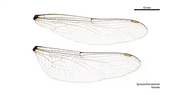 | Vleugel van Spinaeschna watsoni (vrouwtje) | |||||||||||||